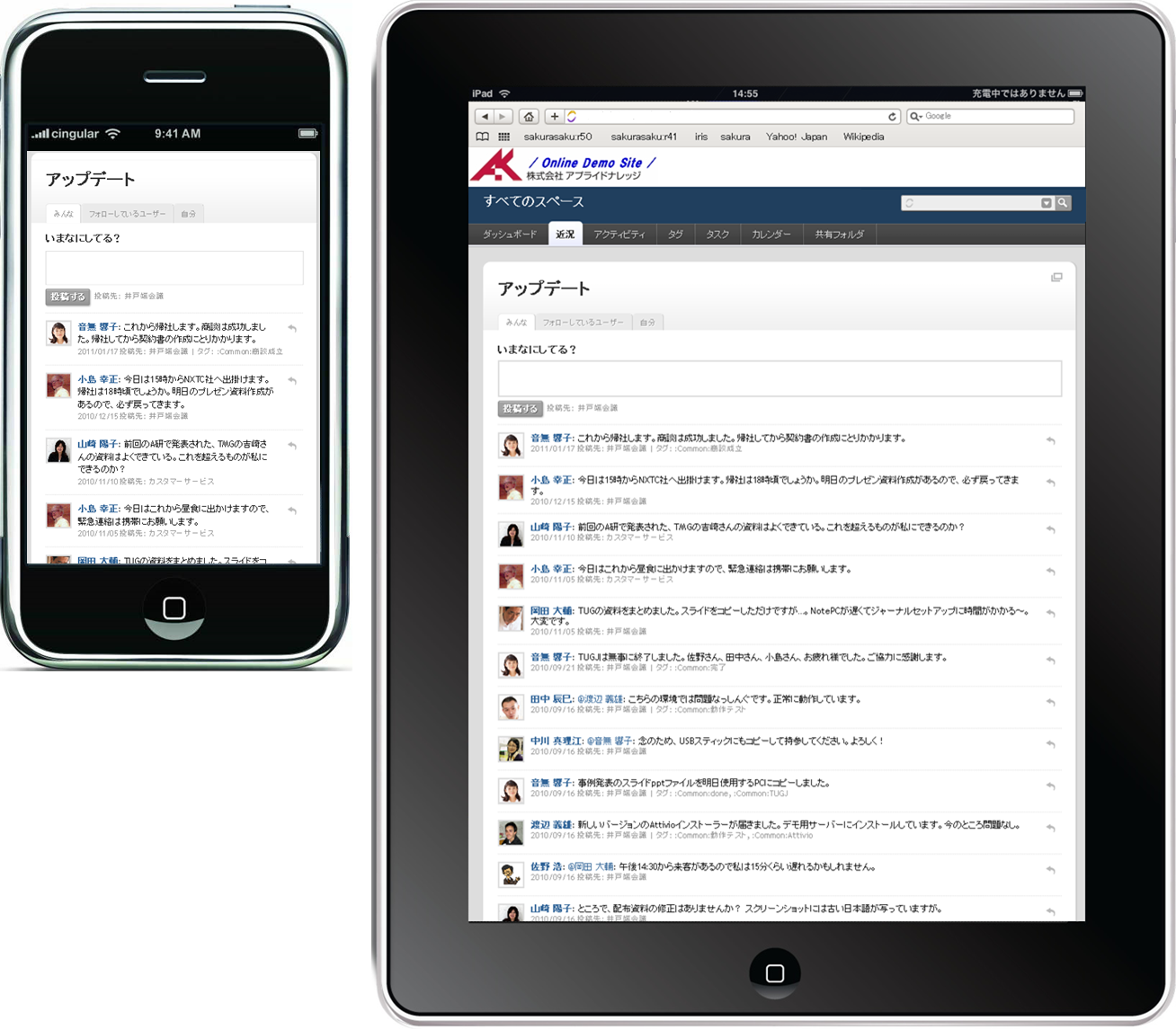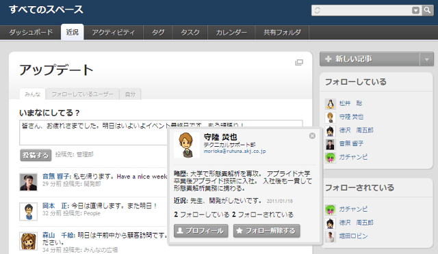 Using TeamPage status updates - mobile, laptop, desktop (Japanese)